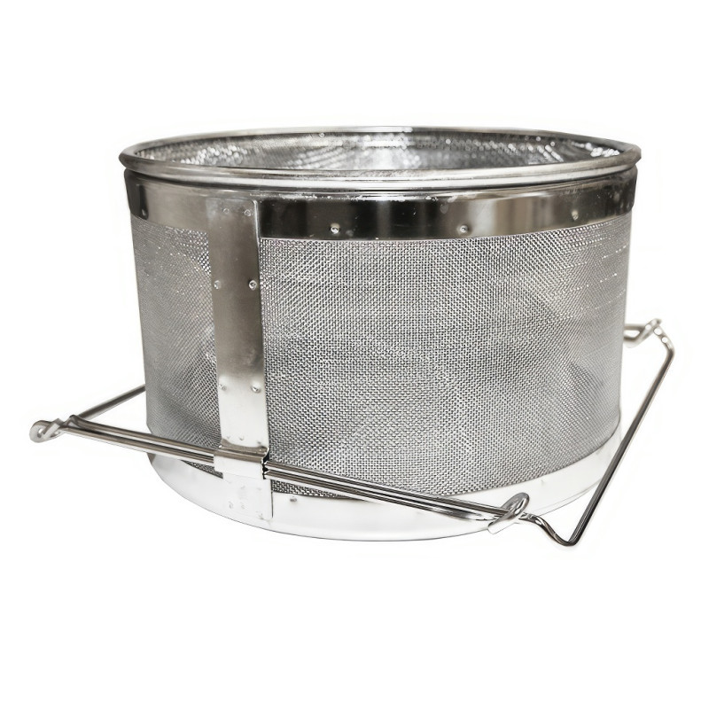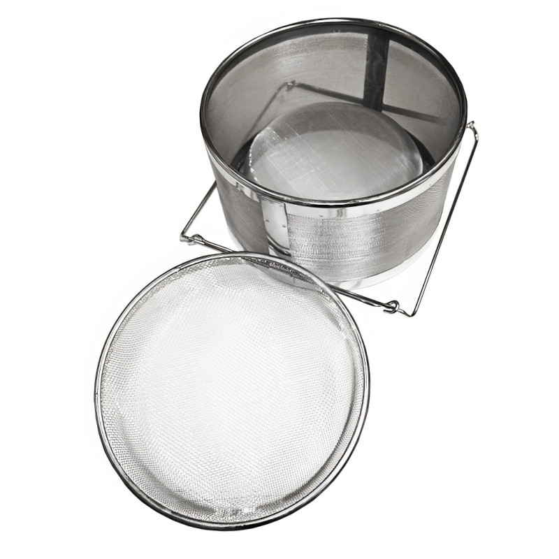Veľké nerezové sitko z kvalitnej nerezovej zliatiny s dvojitou sieťkou pre dokonalé vycedenie medu. Priemer sitka je 25 cm, pre nasadenie na ľubovoľnú nádobu slúži posuvným držiakom. Výška cedníka je 15 cm, pre maximalizovanie cediacej plochy cedníka je jemnejšie sito dvakrát vypuklé. Hustejšie z dvojice sít má oká s rozmermi 1x1 mm a je dvakrát vypuklé, hrubšie sito má oká s rozmermi 2x2 mm a je ploché.