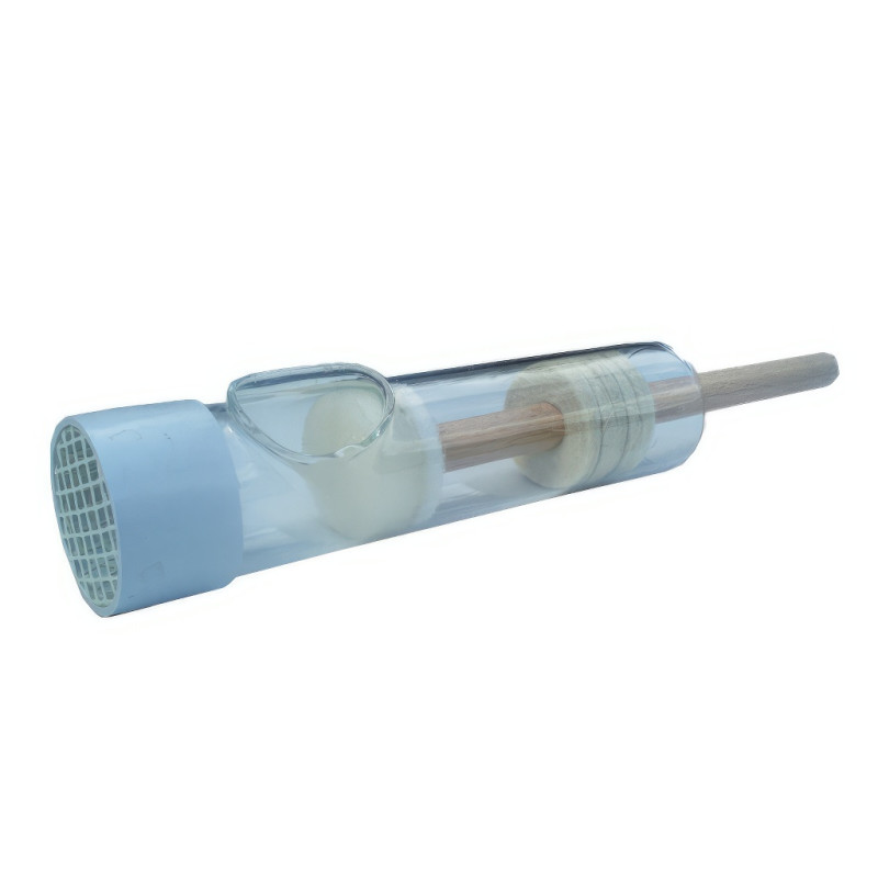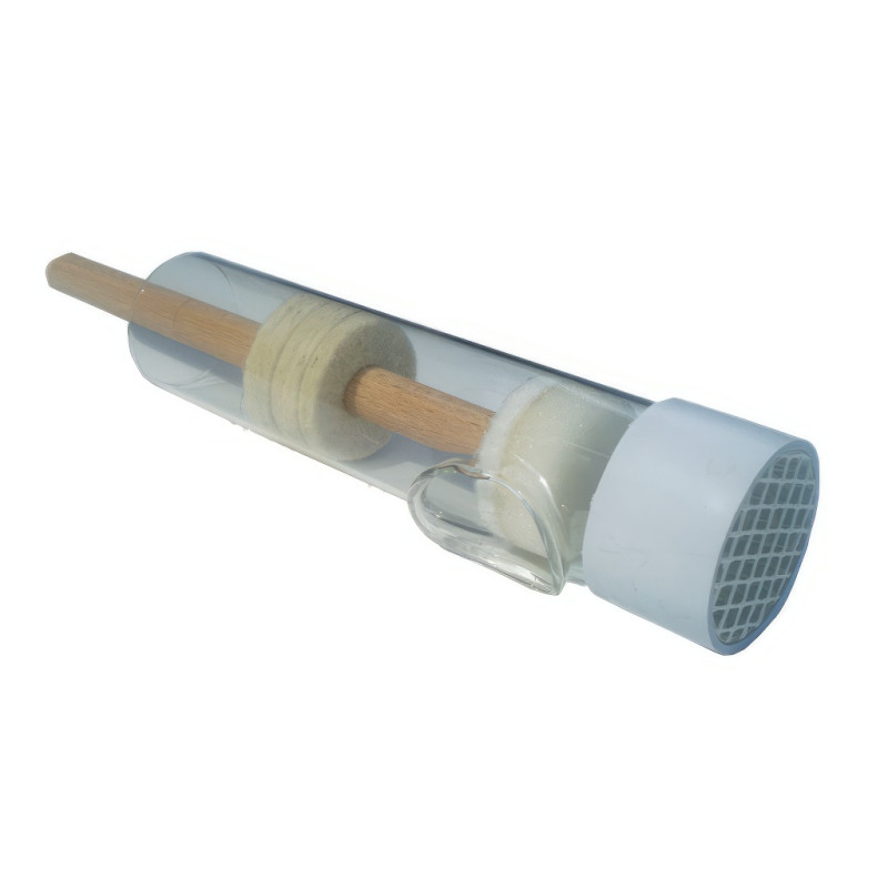 Jednoduchá pomôcka pre všetkých včelárov, ktorí si sami značia matky. Slúži na šetrný odchyt matky z úľa a na ich značenie. Značiaci a vychytávací piestik sa jednoducho ovláda a vďaka jeho sklenenej konštrukcii nehrozí poškodenie samotnej matky. Povytiahnutý piestik položíme na plast a miernym tlakom a posunom piestika donútime matku vliezť dovnútra. Ďalším posunom piestika matku pritlačíme na sieťku cez ktorú ju môžeme jednoducho označiť farbou alebo číslom. Samotný piestik je z molitanu, takže sa nemusíme báť, že by sme matke ublížili. Odtiahnutím piestika matku povolíme a v úli môžeme piestik povoliť tak, aby sa matka cez otvor dostala von.