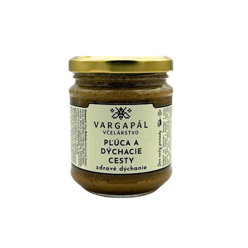 Kvetový med obohatený o huby Kozinec, Cordyceps a Reishi, tradične používané pre podporu pľúc a dýchacích ciest, doplnený o sladké drievko, skorocel a šalviu.