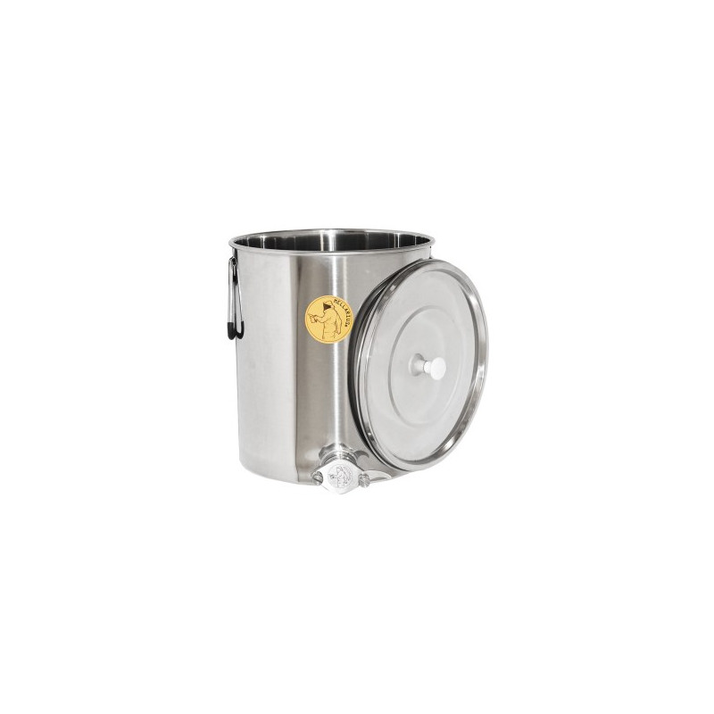 Stáčacia nemecká nerezová nádoba Mellarius na 35 kg medu s nerezovým kohútikom a nerezovým vrchnákom. Kvalitná stáčacia nádoba, ktorá pojme 35 kilogramov medu. Stáčacia nádoba je vyrobená z potravinárskeho nerezu. Nádoba je opatrená jedným stáčacím nerezovým ventilom. Nerezové stáčacie nádoby s dlhou životnosťou. Stáčacie nádoby zaručujú pohodlnú prácu a ľahké stáčanie medu. Rozmery: výška 33 cm, priemer 30,1 cm. Produkt od zahraničného dodávateľa včelárskych potrieb.
