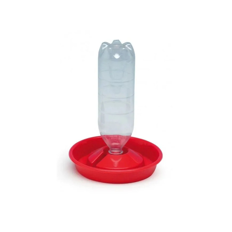 Napájačka na 1,5-2l vody, odolný, ľahko umývateľný plast. Voda sa u tohto typu napájačky dopĺňa do PET fľaše (ktorá nie je súčasťou balenia) a pripevní sa na pevný tanier. Voda sa potom do tohto taniera počas dňa samovoľne dopĺňa. Tanier je vyrobený z veľmi odolného plastu, ktorý sa ľahko čistí a udržiava. Rozmer napájačky: priemer 210 mm.