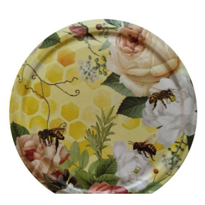 Plechové viečka so včelárskym motívom, s uzáverom TWIST a priemerom 82 mm.