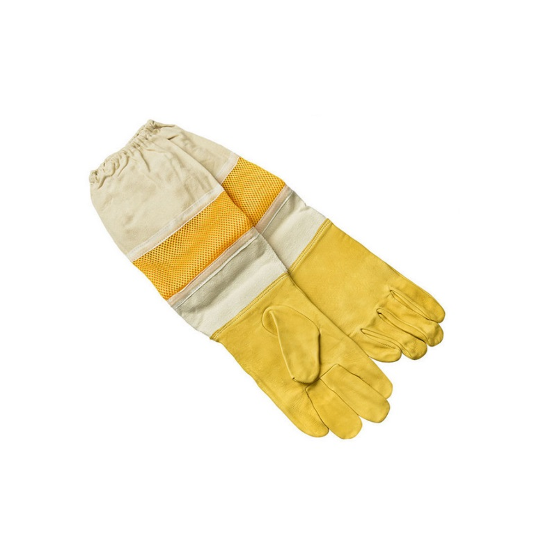 Rukavice S žltá koža dlhé BEE s vetraním, plátnom a gumou